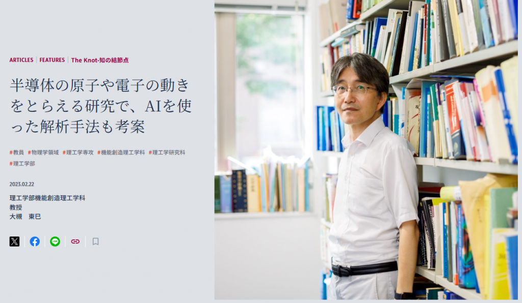半導体の乱れた原子や電子の動きをとらえる研究に取り組む理工学部の大槻東巳教授。ミクロな物質である電子を研究する意義や、近年、力を入れているAIを使った新しい研究手法について語ります。