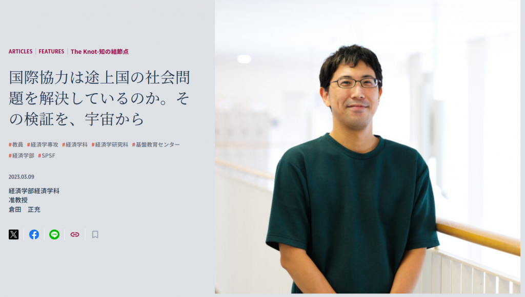 発展途上国における社会問題の解決を目指す開発経済学を専門とする、経済学部の倉田正充准教授。途上国の貧困の実態把握や、国際協力の効果の検証に、人工衛星のデータを使う新しい試みを実践しています。